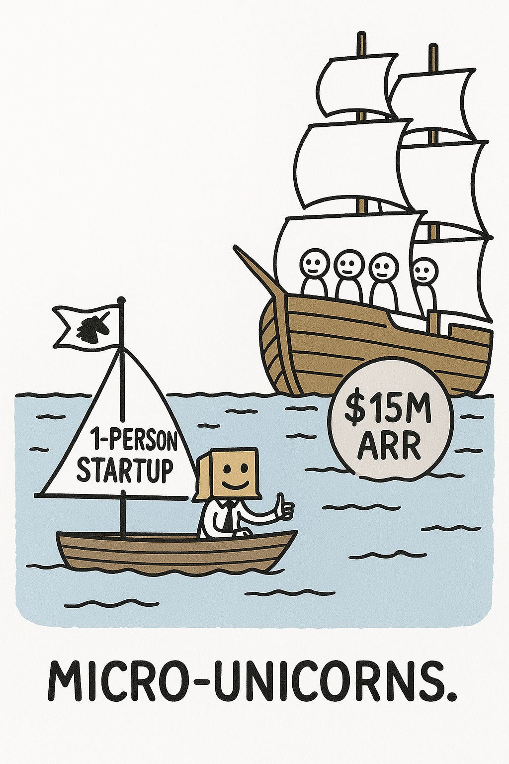 One of the most fascinating trends I'm observing is the emergence of what some call "micro-unicorns" – startups with outsized impact despite tiny human teams. While billion-dollar solo-founder companies remain elusive, we're seeing more examples of 1-3 person teams building businesses that would have required 20+ people just a few years ago.